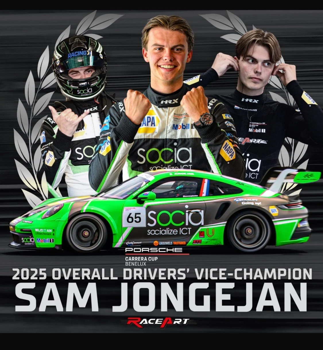 Maastricht, 30 september 2025 - Team RaceArt heeft haar dominante seizoen in de Porsche Carrera Cup Benelux op perfecte wijze afgesloten door in de finale op Zandvoort de titels in het algemeen klassement én de Pro-Am-klasse binnen te slepen. Jaap van Lagen en Jules Grouwels veroverden beiden hun respectievelijke titels in de voorlaatste race van het seizoen. Sam Jongejan eindigde het seizoen als tweede in het algemeen klassement, mede dankzij een sterke inhaalrace in de laatste wedstrijd van het seizoen.